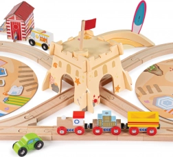 Dominanta seta je velik grad iz peska, skozi katerega se pelje vlakec. Progi doda višino, zgodbo in nove igralne situacije – otroci tako vadijo pozornost in koordinacijo.