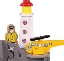 V svoj svet vlakcev dodajte obalne dogodivščine s svetilnikom, hiško in pristajalno ploščadjo za helikopter. Otroci lahko raziskujejo tunel, skrit v »morskem« skalovju, vodijo reševalne akcije ter razvijajo domišljijo in pripovedovalske veščine.