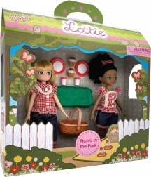 Komplet Lottie in Meghan prinaša v otroški svet naravno lepoto in prijazen pogled na svet. Zaradi kompaktne velikosti 18 cm popolno sedeta v majhne roke, zlahka se oblačita, stabilna zasnova pa omogoča samostojno stanje. Lasje iz kakovostnega najlona se ne vozlajo, prijeten mehak vinil pa je nežen do otroške kože.