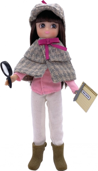 - Detektivkin model: kariran rjavo-zelen plašček okrašen z roza pentljo, čepico, roza srajco, bež hlače, rjave čevlje, beležko, pero in nalepke s prstnimi odtisi.