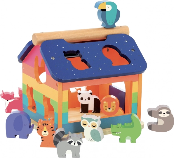 Vilac vstavljanka hiška mavrica je idealna igrača za malčke. S pomočjo raznolikih, pisano obarvanih figuric lahko otroci s pravilnim poimenovanjem in pripisovanjem posameznih lastnosti razvijajo svoje spoznavne veščine in domišljijo. Hiška ima odpirajoča se vratca, ki so prožno obešena, zato ne grozi priprtje otroških prstkov. Del hiške je tudi praktičen ročaj na strehi, ki omogoča enostavno rokovanje in prenašanje.
