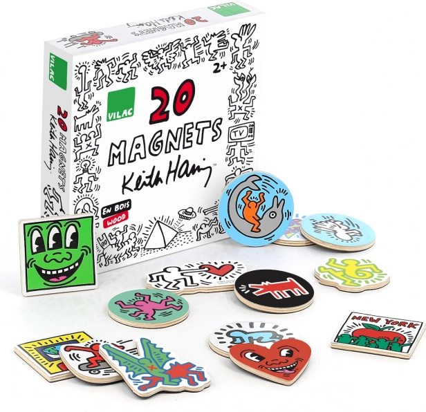 Originalen set lesenih magnetkov z ikoničnimi ilustracijami KEITH HARING bo poživil vašo hladilnik, tablo in otroško sobo. Magnetki iz odporne vezane plošče imajo kakovosten sijoč tisk in trdno držijo na kovinskih površinah. Popolno darilo v privlačni darilni škatlici, primerno od 2 let.