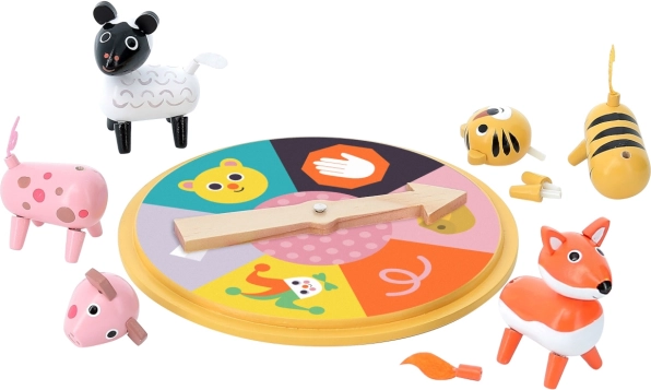 Kolo sreče prinaša v igro element sreče in napetosti, kjer vsak igralec postopoma sestavlja svojo žival glede na rezultat. Odlična dinamika za otroke!