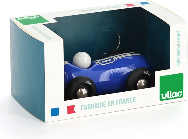 Vilac dirkalni avto Streamline PM v modri barvi navduši s brezčasnim, prijetno zaobljenim dizajnom in natančno izdelavo. Leseno ohišje je lakirano po tradicionalni potopni metodi, kar zagotavlja odporno in enakomerno površino. Plastična kolesa z gladkim tekom naredijo vožnjo prijetno – doma po tleh ali na polici kot stilska dekoracija.