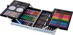 Vse, kar potrebujete za ustvarjanje, na enem mestu. Komplet združuje različne tehnike – risanje, barvanje in slikanje. Z bogato barvno paleto zlahka najdete pravi odtenek in v celoti izrazite svojo domišljijo. Prenosni kovček z zanesljivim ročajem in dvojno zaponko omogoča, da likovne pripomočke vzamete kamor koli.
