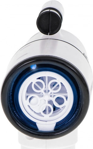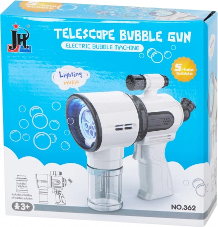 Ta bela pištola za mehurčke je idealna za otroke od 3 let naprej in za družinske aktivnosti na prostem. Vgrajen ventilator in sistem s 5 obročki zagotavljata gladko pihanje in tok desetin do stotin mehurčkov z enim pritiskom na sprožilec. Za še več zabave poskrbijo LED osvetlitev in zvoki, ki ju lahko z enim gumbom vklopite ali izklopite.