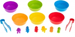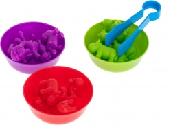 Šest skled v različnih barvah in 36 figuric omogoča otrokom razvrščanje, seštevanje in primerjanje – idealno za prve matematične aktivnosti.