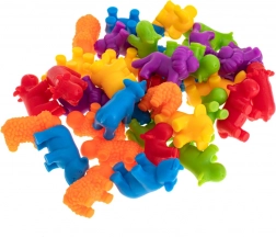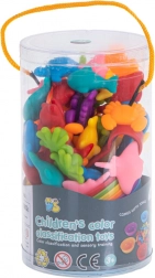 Ta barvit komplet združuje igro in učenje. Mali raziskovalci se naučijo osnov štetja, razvrščanja po barvah in prepoznavanja safari živali. Praktični pinceti spodbujata fino motoriko in koordinacijo oko–roka, sklede pa olajšajo razvrščanje in seštevanje.