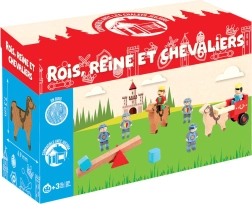 Jeujura ponuja edinstven komplet lesenih figuric, ki vključuje kralja, kraljico in viteze. Te figurice so skrbno narejene iz masivnega lesa in obdelane z vodotopnimi barvami in laki, kar zagotavlja maksimalno varnost. Zaradi premičnih udov lahko otroci enostavno uprizarjajo različne prizore.
