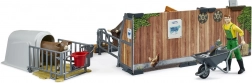 Omogočite otrokom, da postanejo mali kmetje s tem podrobnim kmetijskim setom. Set vključuje dva hleva: enega za tele in večjega za kravo, oba opremljena z napajalnikom in koritom. Otroci bodo uživali v igri s premično figurico kmeta in realističnimi orodji, kar jim približa vsakodnevno življenje na kmetiji.