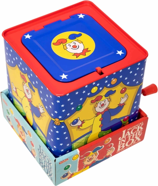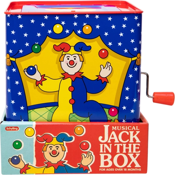 Glasbena skrinjica kašpar je brezčasna igrača narejena iz pločevine s čudovitim dizajnom, ki zagotavlja ure zabave. Preprosto obrnite ročico in poslušajte melodijo znane pesmi "Pop Goes The Weasel", dokler se pisani kašpar ne pojavi.
