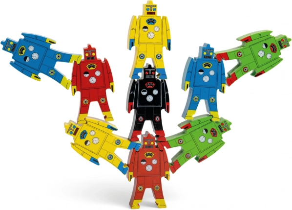 Zabavna uravnoteževalna igra z lesenimi roboti, ki razvija fino motoriko, potrpežljivost in logično razmišljanje. Devet barvitih robotov lahko zlagate na nešteto načinov – preizkusite svojo kreativnost in ravnotežje pri gradnji izvirnih konstrukcij iz varnih, netoksičnih materialov.