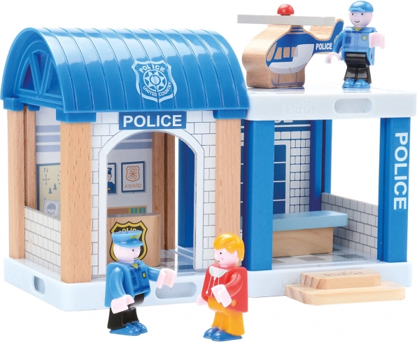 Ta podrobno oblikovana lesena vlakovna proga je idealna za male inženirje, ki obožujejo vlake in policijske pustolovščine. Vključuje progo z mostom, privlačno policijsko postajo ter druge dodatke, vključno z avtomobilčkom in helikopterjem.