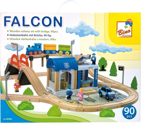 Lesena vlakovna proga s policijsko postajo ponuja 90 delov za kreativno zabavo. Združljiva z drugimi proizvajalci.
