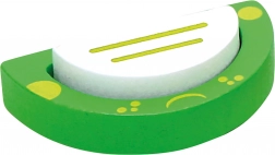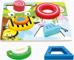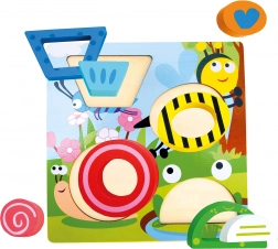 Lesena prostorska vstavljanka z veselimi, pisano obarvanimi motivi ribnika je idealen pripomoček za otroke od 3 let dalje. Koščki se vstavljajo v trdno osnovo v pravilnem zaporedju, kar podpira razumevanje posloupnosti in razvoj koordinacijskih sposobnosti. Kakovostna izdelava iz masivnega lesa in debele vezane plošče naredi to igračo za vzdržljivega spremljevalca pri vsakodnevni igri.