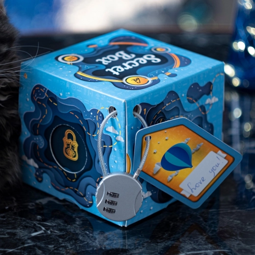 Sestavite škatlico, izberite svojo trimestno kodo in darilo zaklenite z zanesljivo kombinacijsko ključavnico. Idealno za napeto predajo presenečenja.