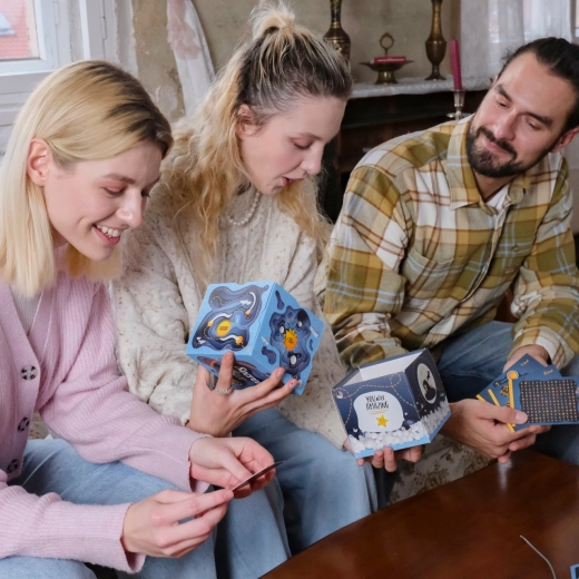 Spremenite predajo darila v nepozabno doživetje. Skrivnostna škatlica ESCAPEWELT je elegantna sestavljanka, ki jo po sestavi zaklenete s trimestno kodo in prejemniku pripravite niz logičnih sledi na štirih karticah. Z barvnimi nalepkami, simboli in smernimi namigi si sami nastavite zahtevnost in vzdušje uganke.