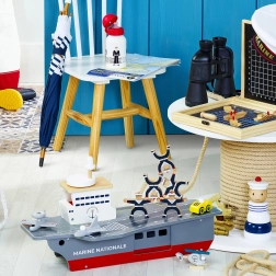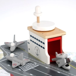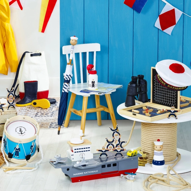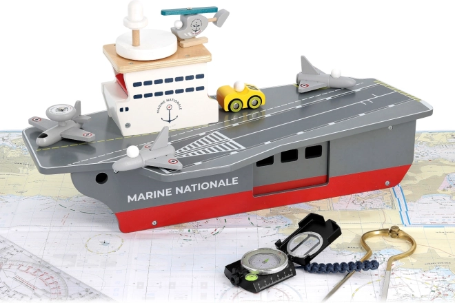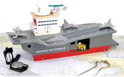 Ta natančno izdelana lesena letalonosilka zvesto posnema prave nosilce letal, vključno z označbami Marine Nationale. Narejena je iz vzdržljive, a lahke vezane plošče, zato je stabilna in enostavna za rokovanje tudi za mlajše otroke. Realistični poslikani detajli in premišljeni elementi spodbujajo domišljijo ter prinašajo avtentično pomorsko doživetje.