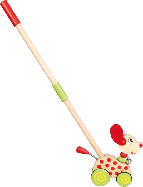 Leseni potisni kužek na palici znamke Bino je priljubljena gibalna igrača, ki otroke motivira k hoji in aktivnemu gibanju. Ob potiskanju pred seboj kužek z zvončkom nežno cinglja, kar otroke zabava in spodbuja k nadaljnjim korakom. Gumirana kolesca zagotavljajo gladko in tiho vožnjo po različnih površinah.