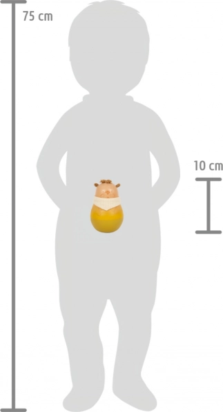 Interaktivna igrača z zvončkom v notranjosti, ki ob vsakem gibu spodbuja slušno zaznavanje. Mehanizem samopostavitve razvija motorične spretnosti.