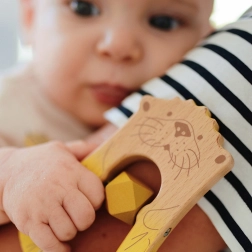Enostavno za prijemanje in nežno rožljanje pritegne pozornost vašega otroka, grizalo pa pomaga pri rasti zob.
