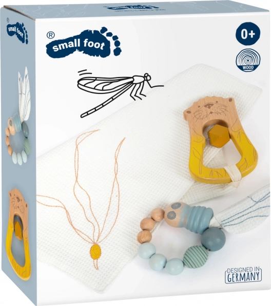 Ta 3-delni komplet za novorojenčke je idealen kot 'prve igrače' za vašega otroka. Set ponuja grizalo in ropotuljo v enem morskem vidru, bombažno krpo za ljubkovanje ali slinjenje in senzorično igračo kačjega pastirja s krili, ki vsebujejo šumečo folijo. Vsaka igrača je zasnovana z namenom razvoja motoričnih sposobnosti in senzoričnega zaznavanja.