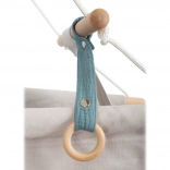 Gugalnica za najmlajše Morje nudi izjemno udobje za vašega otroka. Opremljena je z mehkimi, odstranljivimi blazinami, ki so pritrjene s trakovi, in tritočkovnim pasom za maksimalno varnost. Dizajn v dimno modri barvi v popolni harmoniji s skrbno obdelanim masivnim lesom dodaja šarm vsaki sobi ali vrtu.