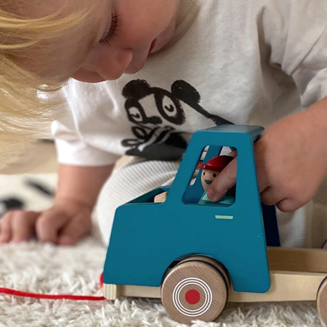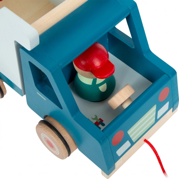 Ta moderen leseni kiper je popolna igrača za male gradbenike. Opremljen je s kesonom, ki ga je mogoče povsem prevrniti, in z voznikom, ki se med vožnjo ziblje, kar prinaša dodatno zabavo. Zahvaljujoč gumiranim kolesom se premika tiho in gladko.