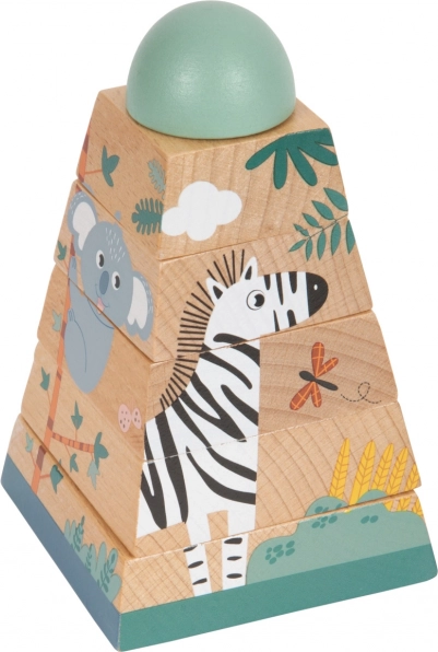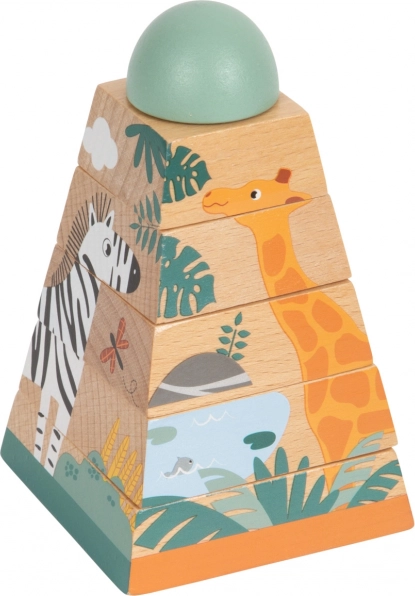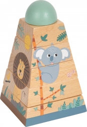 Ta igrača iz trpežnega lesa otrokom omogoča izboljšanje motoričnih spretnosti in koordinacije oko–roka. Sestavlja jo šest delov, ki ob pravilnem natikanju razkrijejo vesela safari bitja. Stolp je odličen tako kot izobraževalno orodje kot tudi estetski dodatek vsake otroške sobe s svojimi živahnimi barvami.