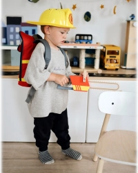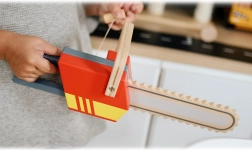 Ta kakovostna otroška motorna žaga iz lesa združuje vzdržljivo izdelavo in varen dizajn za vsakodnevno igro. Izraziti rdeči in rumeni elementi z realistično obliko žage spodbujajo domišljijo ter razvijajo igro vlog in fino motoriko.