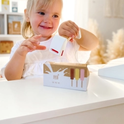 Small foot prinaša v svet otrok zabavo z realističnimi lesenimi sladoledi, ki so popoln dodatek k otroškim prodajnim stojnicam in kuhinjam. Ta komplet vsebuje tri sladolede v priljubljenih okusih – jagoda, vanilija in čokolada. Otroci se lahko veselijo dolgotrajne zabave pri igri in se hkrati učijo skozi interaktivno igro.
