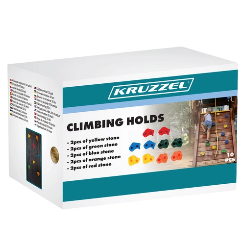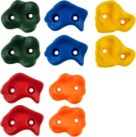 Razširite otroško igrišče z varnimi in vzdržljivimi plezalnimi oprimki, ki spodbujajo gibanje in zabavo na svežem zraku. Set 10 kosov v kontrastnih barvah (rdeča, rumena, zelena, modra, oranžna) olajša načrtovanje poti in podpira vizualno orientacijo.