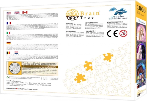 Sestavljanka Čarobni konji 1000 kosov znamke Brain Tree vas takoj navduši z vrhunskim tiskom in obdelavo površine. Mat zaključek zagotavlja popolno vidnost tudi najmanjših podrobnosti v različnih svetlobnih pogojih. Zaradi visoke odpornosti proti obrabi lahko sestavljate znova in znova.