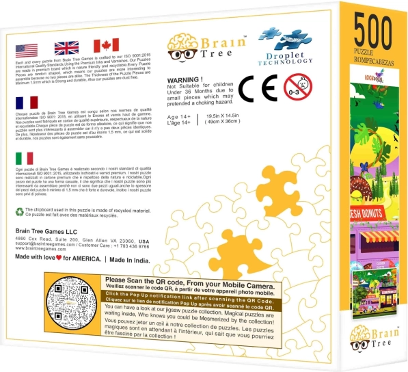 Brain Tree Puzzle Zaprt Svet 500 kosov ponuja edinstveno zabavo za vse ljubitelje ugank. Zahvaljujoč prvovrstnemu tisku in mat končni obdelavi površine, to puzzle zagotavlja izjemno vizualno izkušnjo pri vsakem sestavljanju.