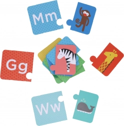 S temi didaktičnimi sestavljankami lahko otroci pripisujejo črke slikam živali glede na njihove angleške nazive, kar pomembno prispeva k širjenju besedišča. Zahvaljujoč reliefno vtisnjenim črkam lahko otroci črke ne le vidijo, temveč jih tudi občutijo, kar igro naredi še bolj privlačno. Vsi delci so izdelani iz 100% FSC papirja, tiskanega z rastlinskimi črnili, kar zagotavlja varnost in prijaznost do okolja.