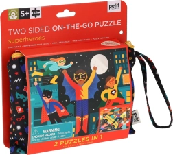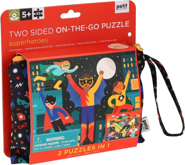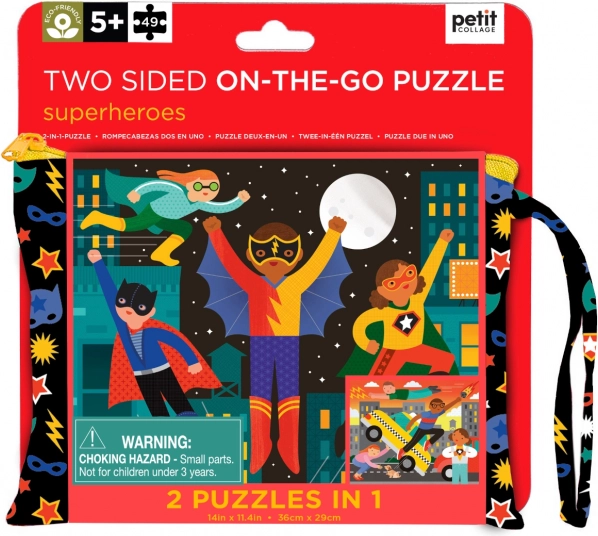 Odkrijte čar sveta superjunakov z dvostransko sestavljanko znamke Petit Collage. Vsak otrok se lahko poda v avanturo, ki spodbuja prepoznavanje oblik in barv.
