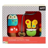Petit Collage motorični labirint Vrt Activity Trio je čudovito izdelana lesena igrača, ki ponuja trojico različnih aktivnosti. Otroci lahko uživajo v nameščanju, premikanju in vrtenju živalskih figuric in drugih delov te igrače. Njegova enostavna, a privlačna zasnova spodbuja razvoj kognitivnih spretnosti in domišljijo otrok.