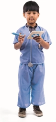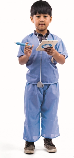 Spodbudite otroško domišljijo in vlogo skrbnega zdravnika. Realistični kostum zdravstvenega delavca je idealen za oskrbo medvedkov, punčk in družinskih članov ter pomaga otrokom bolje razumeti obisk ordinacije. Zahvaljujoč kakovostnim materialom in premišljenim detajlom je igra udobna in varna.
