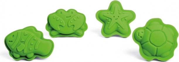 Odkrijte igriv komplet štirih 100% silikonskih modelčkov v zeleni različici Meadow znamke BIGJIGS TOYS. Z njimi bodo otroci ustvarili čudovite peščene stvaritve z motivi morskega sveta – morske zvezde, raka, ribe in želve. Modelčki so odporni na temperature in madeže, prijetno mehki in varni za majhne roke. Po igri jih preprosto shranite v priloženo bombažno vrečko.