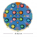 Pametna Montessori igra za najmlajše, ki združuje zabavo in učenje. Otroci pri magnetnem lovljenju ribic, prenašanju elementov s pinceto in razvrščanju po barvah razvijajo fino motoriko, koordinacijo oko–roka, logično razmišljanje in računske veščine. Barvni leseni elementi in bogat komplet dodatkov spodbujajo samostojno in skupno igro.