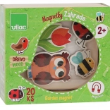 Raziskujte ustvarjalne možnosti z Vilac lesenimi magnetki z motivom vrta. Ti trdni in ekološko izdelani kosi ponujajo neomejene možnosti za igre in dekoracije. Uživajte v čudovitih, barvitih ilustracijah, ki lahko krasijo hladilnik ali otroško sobo.