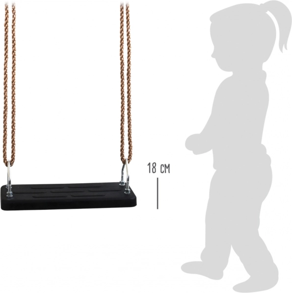 Ta univerzalna zunanja gugalnica SMALL FOOT je zasnovana za vsakodnevno veselje do gibanja na vrtu ali igrišču. Trd gumijast sedež dimenzij 45 × 18 cm je udoben, stabilen in zaradi svoje teksture ne drsi, zato nudi zanesljivost pri guganju.