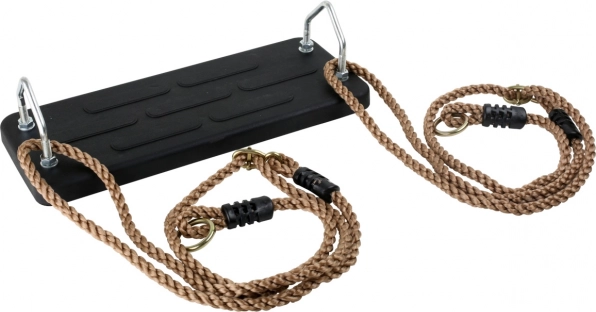 Močne, prožne vrvi iz odpornega materiala so zaključene s kovinskimi obročki za preprosto obešanje. S pomočjo kovinskih vodil hitro prilagodite dolžino do 180 cm, da gugalnica popolno ustreza različnim višinám obešanja. Največja nosilnost 100 kg zagotavlja dolgotrajno in varno uporabo.