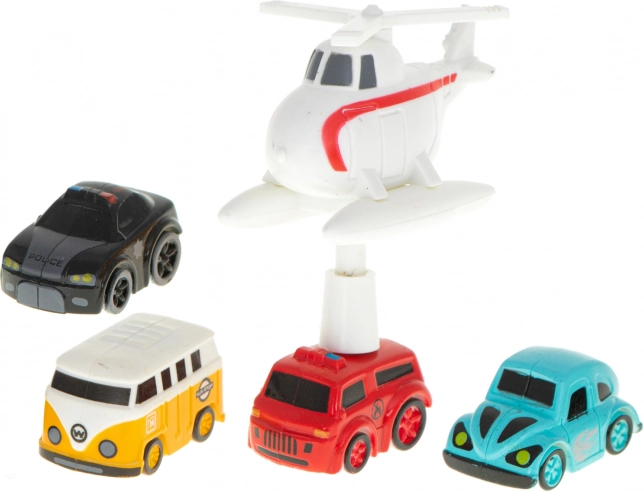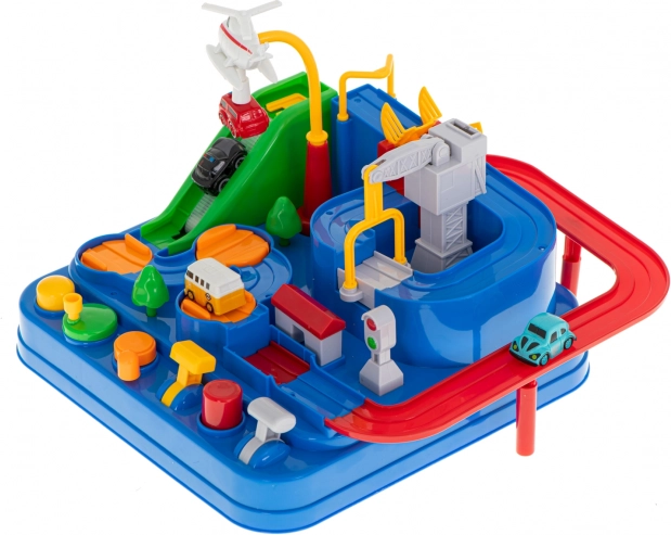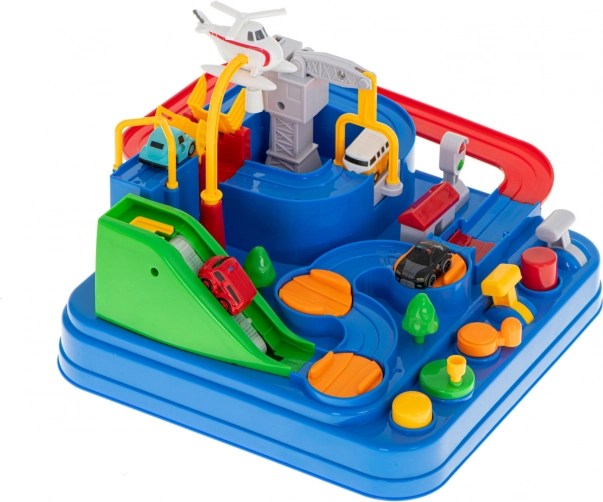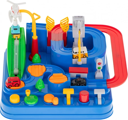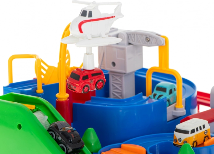 Interaktivni avtomobilski ovirni dirkaški park s 4 vozili in helikopterjem 24 × 24 cm