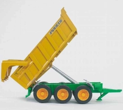 Podrobno izdelana nagibna prikolica JOSKIN znamke BRUDER prinaša otrokom realistično igro na kmetiji ali gradbišču. Zahvaljujoč visokodvižnemu kesonu, upravljanemu s teleskopskim drogom, zlahka razložite tovor, medtem ko se samodejno odpirajoča zadnja vrata poskrbijo za gladko izsipanje. Stabilnost zagotavlja trososna zasnova in praktična nagibna oporna noga za varno parkiranje.
