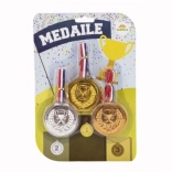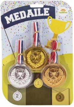 V našem pakiranju najdete tri plastične medalje, ki odlično služijo na otroških tekmovanjih in igrah:
