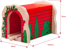 Dodajte svoji železnici z vlakci novo dimenzijo z lesenim tunelom iz opeke. Narejen je iz visoko kakovostnega lesa, z močno konstrukcijo in privlačnim dizajnom, ki spominja na opečno zgradbo, prekrito z zelenjem.