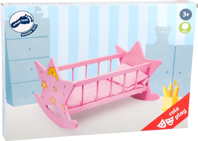 Ta slikovita zibelka za punčke je izdelana iz kakovostnega lesa in ponuja igrive motive zvezd in lun. Stabilna konstrukcija zagotavlja varno zabavo, medtem ko njeno nežno guganje spodbuja socialne veščine in domišljijsko igro.