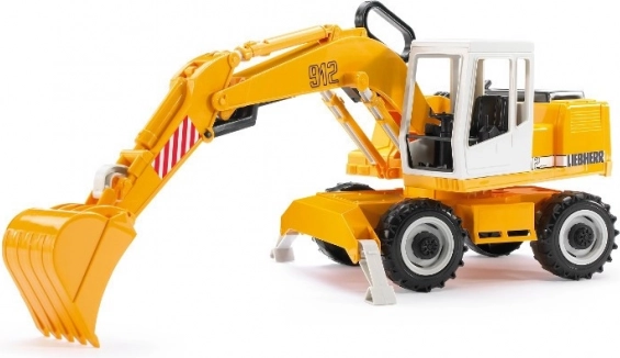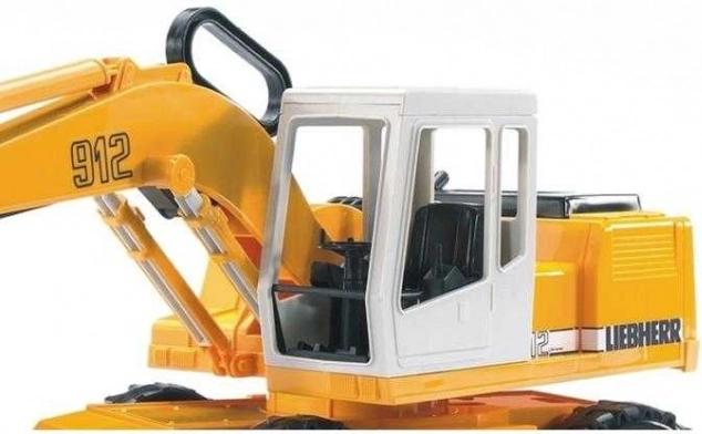Bruder bagr Liebherr je zvestna replika gradbenega stroja z delujočo žlico, stabilizatorjem in vrtljivo osnovo, kar ga naredi za popoln dodatek za vsakega malega graditelja.