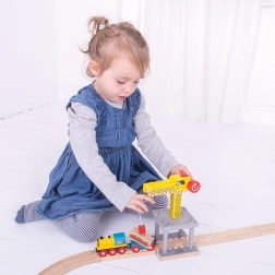 Žerjav se lahko enostavno kombinira z drugimi lesenimi železnicami na trgu, kar ga naredi univerzalno igračo.